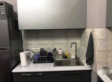 2-roomed 45 sq.m. apartment for rent in Vake, on Paliashvili str, on the third floor, new renovated, with central heating, air-conditioner, open plan living room, furniture, technique, telephone, internet, balcony