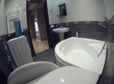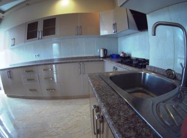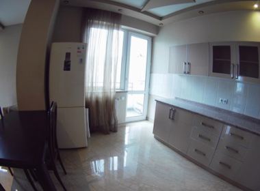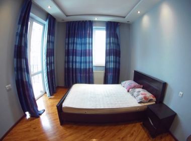 4-roomed 140 sq.m. apartment for rent in Didube, on Samtredia str, in new building, on the 14th floor, new renovated, with central heating, 2 bathrooms, air-conditioner, isolated kitchen, furniture, technique, telephone, internet, balconies, place for parking