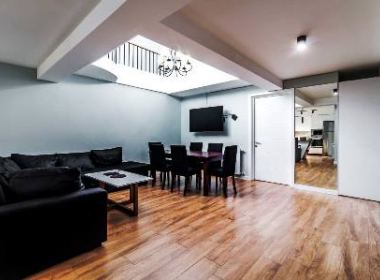 4-roomed 160 sq.m. duplex type apartment for rent in Chugureti, on Uznadze str, on the 8th floor, new renovated, with central heating, 2 bathrooms, open plan living room, furniture, technique, telephone, internet, veranda, place for parking, closed yard