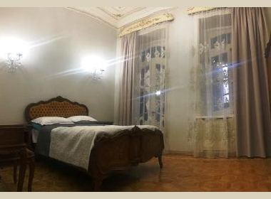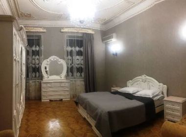 5-roomed 200 sq.m. apartment for rent in Chugureti, on Marjanishvili str, on the second floor, 4 bedrooms, living room with fireplace, kitchen, 2 bathrooms, 40 sq.m. loggia, renovated, with central heating, air-conditioner, furniture, technique, telephone, internet, metal door, balconies