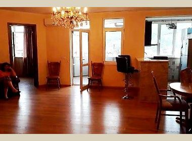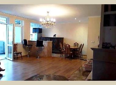 3-roomed 110 sq.m. apartment for rent in Saburtalo, on Panaskerteli str, in new building, on the 12thh floor, new renovated, with central heating, fireplace, air-conditioner, 2 bathrooms, furniture, technique, telephone, internet, balconies with beautiful views, place for parking