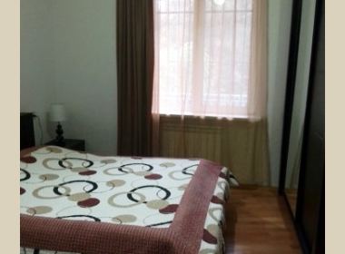 4-roomed 140 sq.m. apartment for rent in Vake, on Tabidze str, II floor of 3-storied private house, new renovated, large hall, 2 bedrooms, cabinet, with central heating, furniture, technique, air-conditioner, 2 toilets, telephone, internet, satellite aerial, metal door, jalousie, large verandah with beautiful panorama on park Vake, garage