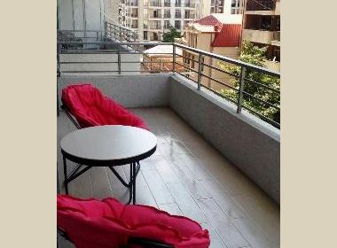 2-roomed 67 sq.m. apartment for rent in Saburtalo, on Burdzgla str, in new building, on the 5th floor, new renovated, with central heating, air-conditioner, furniture, technique, telephone, internet, 10 sq.m. balcony