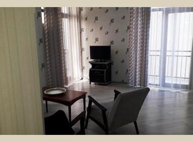 3-roomed 75 sq.m. apartment for rent in Saburtalo, on Panaskerteli str, in new building, on the third floor, new renovated, with central heating, air-conditioner, furniture, technique, telephone, internet, large balcony with beautiful views, place for parking