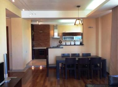3-roomed 100 sq.m. apartment for rent in Saburtalo, on Tamarashvili str, in new building, on the 7th floor, new renovated, with open plan living room, master-bedroom, central heating, air-conditioner, furniture, technique, telephone, internet, 16 sq.m. balcony, concierge service