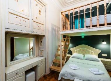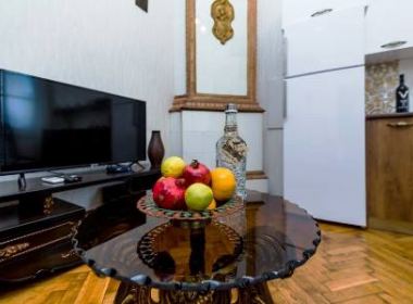 2-roomed 45 sq.m. apartment for rent in Chugureti, on Agmashenebeli ave, on the third floor, renovated, with central heating, fireplace, air-conditioner, furniture, technique, internet, balcony, place for parking