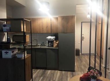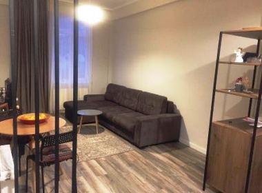2-roomed 60 sq.m. apartment for rent in Bagebi, on Tskneti highway, in new building, on the 6th floor, new renovated, with central heating, air-conditioner, open plan living room, furniture, technique, telephone, internet, metal door, balcony