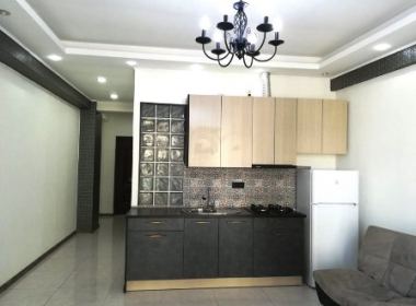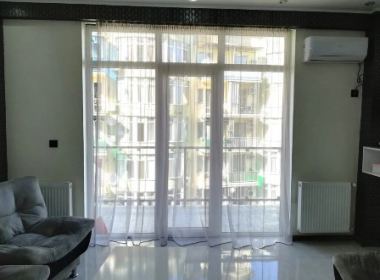 2-roomed 50 sq.m. apartment for rent in Saburtalo, on Berbuki str, in new building, on the 11th floor, new renovated, with open plan living room, central heating, air-conditioner, furniture, technique, telephone, internet, metal door, balcony