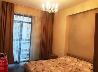 2-roomed 58 sq.m. apartment for rent in Saburtalo, on Kartozia str, in new building of M2, on the third floor, new renovated, with open plan living room, central heating, air-conditioner, furniture, technique, telephone, internet, balcony, place for parking