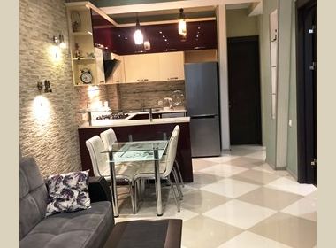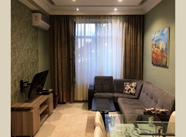 2-roomed 51 sq.m. apartment for rent in Mtatsminda-Sololaki, on Ingorokva str, in new building, on the 6th floor, new renovated, with open plan living room, central heating, air-conditioner, furniture, all technique, telephone, internet, balcony, garage