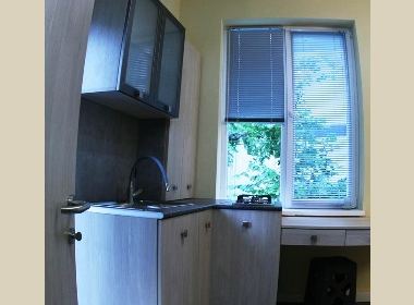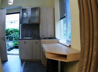2-roomed 35 sq.m. apartment for rent in Vake, on Kekelidze str, I floor, renovated, with open plan living room, heating, hot water, furniture, technique, small yard, place for parking