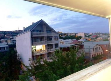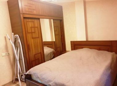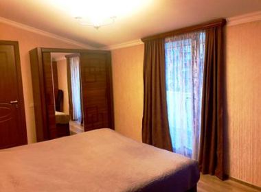 3-roomed 90 sq.m. apartment for rent in Saburtalo, on Nucubidze str, on the 5th floor, with high ceilings, renovated, with central heating, air-conditioner, open plan living room, furniture, technique, telephone, internet, balcony, without lift
