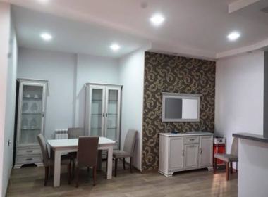 3-roomed 80 sq.m. apartment for rent in Saburtalo, on Mirotadze str, in new building, on the 4th floor, new renovated, with open plan living room, central heating, 2 air-conditioners, furniture, technique, balcony