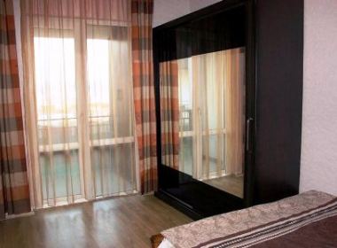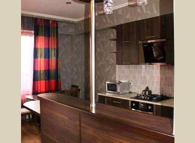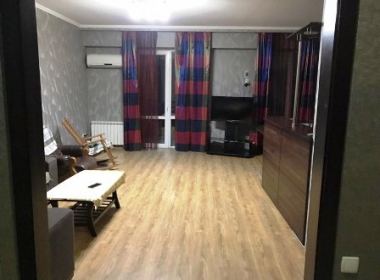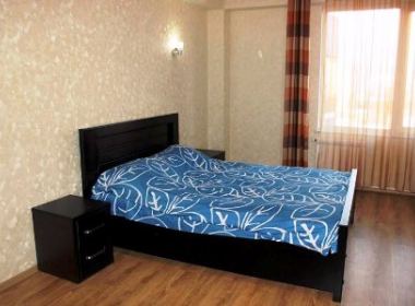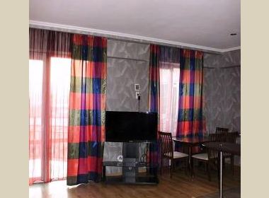 3-roomed 110 sq.m. apartment for rent in Saburtalo, on A. Kalandadze (Bulachauri) str, in new building, on the 9th floor, renovated, with open plan living room, central heating, 2 air-conditioners, 2 bathrooms, furniture, technique, internet, 2 balconies, place for parking