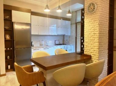 4-roomed 132 sq.m. apartment for rent in Saburtalo, on Alasania str, in new building, on the 4th floor, new renovated, with central heating, 2 bathrooms, air-conditioner, furniture, technique, telephone, internet, balcony with beautiful views, place for parking