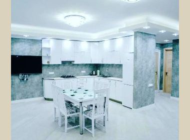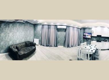 4-roomed 110 sq.m. apartment for rent in Saburtalo, on Gagarin str, in new building, on the 4th floor, new renovated, with central heating, open plan living room, 2 bathrooms, 2 air-conditioners, furniture, technique, telephone, internet, balconies