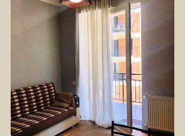 2-roomed 45 sq.m. apartment for rent in Saburtalo, on Jikia str, in new building, on the third floor, new renovated, with open plan living room, central heating, furniture, technique, balcony, place for parking