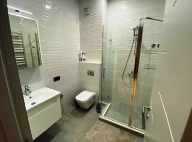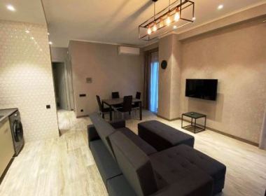 2-roomed 70 sq.m. apartment for rent in Saburtalo, on Chkheidze str, on territory of Shankhai, in new building, on the 7th floor, new renovated, with open plan living room, central heating, air-conditioner, furniture, technique, telephone, internet, metal door, balcony