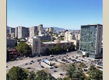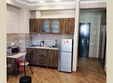 1-roomed 45 sq.m. apartment for rent in Saburtalo, on Berbuki str, in new building of AXIS, on the 13th floor, new renovated, with open plan living room, central heating, air-conditioner, furniture, technique, telephone, internet, balcony