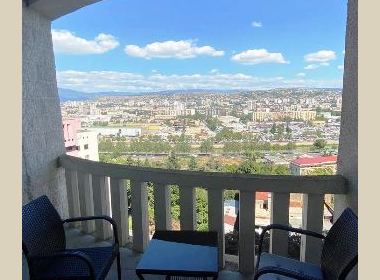 3-roomed 60 sq.m. apartment for rent in Saburtalo, on Shartava str, in new building, on the 8th floor, new renovated, with open plan living room, central heating, air-conditioner, furniture, technique, telephone, internet, veranda with beautiful views, cameras and homophone