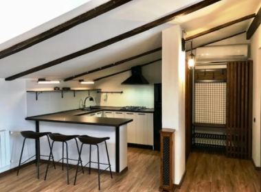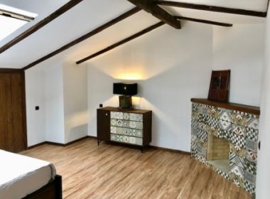 2-roomed 90 sq.m. apartment for rent in Saburtalo, on M. Chakhava str, territory of Shankhai, in new building, on the 8th floor, new renovated, with central heating, air-conditioner, open plan living room, dressing room, fireplace, furniture, technique, telephone, internet, 20 sq.m. veranda