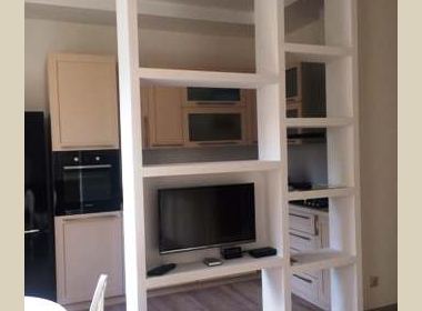 2-roomed 55 sq.m. apartment for rent in Bagebi, on Tskneti highway, in new building, on the second floor, new renovated, with central heating, open plan living room, furniture, technique, telephone, internet