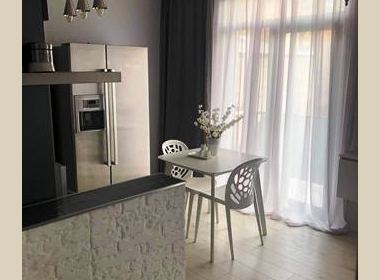 3-roomed 70 sq.m. apartment for rent in Chugureti, on Chubinashvili str, in new building, on the third floor, new renovated, with central heating, air-conditioner, open plan living room, all furniture and technique, telephone, internet, balconies in all rooms