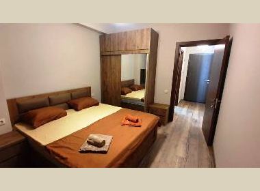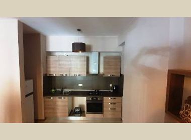 2-roomed 55 sq.m. apartment for rent in Saburtalo, on Kartozia str, in new building of M2, on the third floor, new renovated, with central heating, air-conditioner, open plan living room, furniture, technique, telephone, internet, metal door, balcony, concierge service