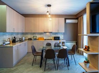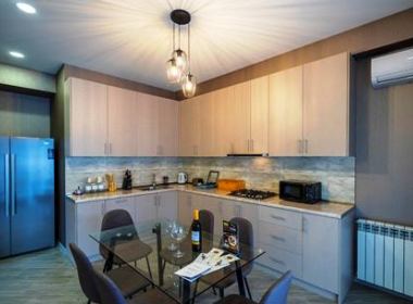 3-roomed 135 sq.m. apartment for rent on Vera, Barnov str, in new building, on the 8th floor, new renovated, with central heating, air-conditioner, 3 bathrooms, open plan living room, furniture, technique, telephone, internet, 16 sq.m. balcony with beautiful views, parking