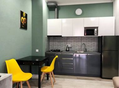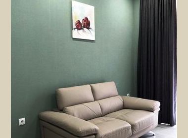2-roomed 45 sq.m. apartment for rent in Saburtalo, on Jikia (Politkovskaya) str, in new building, on the 8th floor, new renovated, with open plan living room, central heating, air-conditioner, furniture, technique, internet, metal door, balcony, secured yard