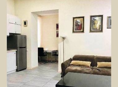 2-roomed 65 sq.m. apartment for rent in Vake, on Abashidze str, on the second floor, new renovated, with open plan living room, central heating, air-conditioner, furniture, technique, telephone, internet, balcony