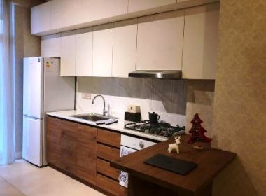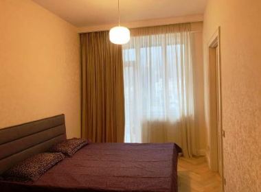 2-roomed 62 sq.m. apartment in Vake, on Shatberashvili str, in new building, on the 9th floor, renovated, with open plan living room, central heating, air-conditioner, furniture, technique, balcony with beautiful views