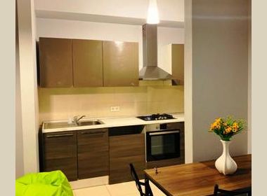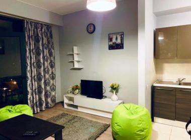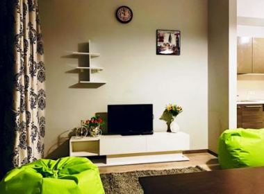 4-roomed 120 sq.m. apartment for rent in Saburtalo, on Kazbegi ave, in new building of M2, on the third floor, new renovated, with open plan living room, central heating, air-conditioners in all rooms, 2 bathrooms, furniture, technique, balconies, concierge service