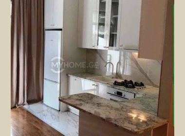 3-roomed 85 sq.m. apartment for rent in Vake, on Abashidze str, near Vake park, in new prestigious building, on the 6th floor, new renovated, with open plan living room, central heating, air-conditioner, furniture, technique, balcony, renovated entrance, concierge service