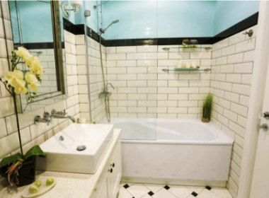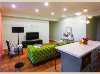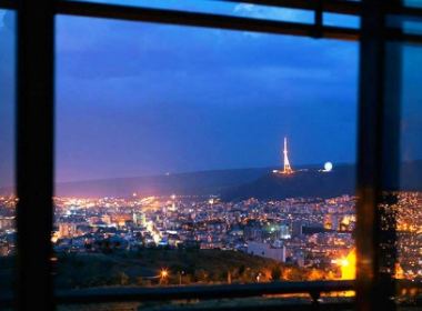 3-roomed 105 sq.m. apartment for rent in Saburtalo, on Lisi Veranda, in new building, on the third floor, high-quality renovated, with open plan living room, central heating, air-conditioner, veranda with excellent views, parking and security system