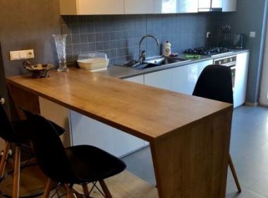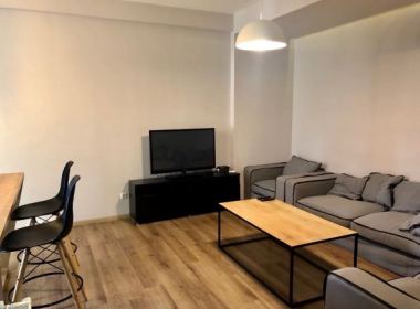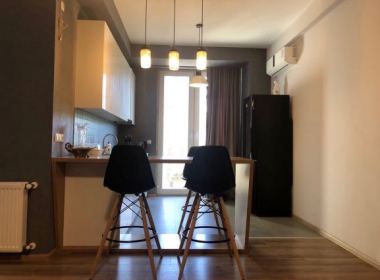2-roomed 60 sq.m. apartment for rent in Saburtalo, on Kandelaki str, in new building, on the 6th floor, new renovated, with open plan living room, central heating, air-conditioner, furniture, technique, balcony