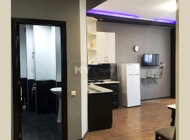 2-roomed 60 sq.m. apartment for rent in Saburtalo, on Sandro Euli str, near metro Univercity, in new building, on the third floor, new renovated, with open plan living room, central heating, air-conditioner, furniture, technique