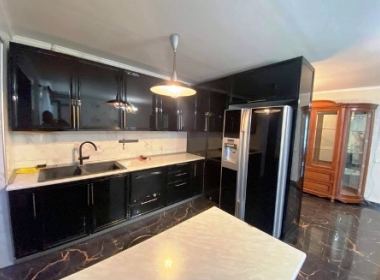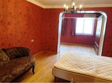 3-roomed 105 sq.m. apartment for rent in Saburtalo, on Tamarashvili str, on the 5th floor, renovated, with central heating, 2 air-conditioners, furniture, technique, internet, metal door, 2 balconies