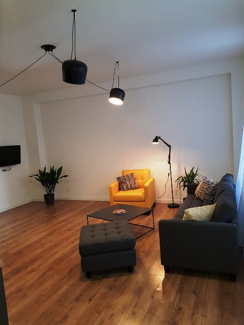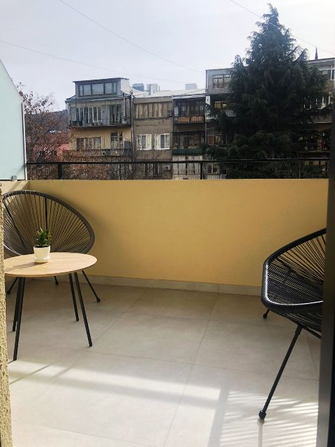 2-roomed 65 sq.m. apartment for rent in Vake, on Chvchavadze ave, in new building, on the third floor, new renovated, with open plan living room, central heating, air-conditioner, furniture, technique, balcony