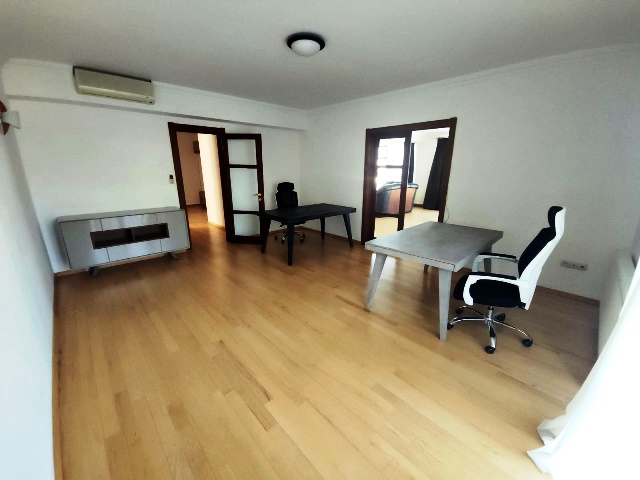 7-roomed 295 sq.m. apartment for rent in Vake, on Tskhvedadze str, near Vake park, in new building, on the second floor, 4 bedrooms, isolated kitchen, 4 bathrooms, new renovated, with central heating, air-conditioning, fireplace, furniture, technique, balconies, veranda, concierge service