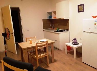 2-roomed 60 sq.m. apartment for rent in Vake, on Paliashvili str, in new building of Domus, on the third floor, new renovated, with central heating, furniture, technique, balcony