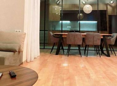 4-roomed 160 sq.m. apartment for rent in Mtatsminda-Sololaki, on Shevchenko str, in new building, on the 8th floor, new renovated, with central heating, 2 bathrooms, furniture, technique, balcony with beautiful views, place for parking, concierge service, sport hall and swimming pool in the building