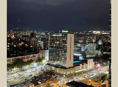 2-roomed 55 sq.m. apartment for rent in Saburtalo, on Berbuki str, in new building, on the 17th floor, new renovated, with open plan living room, central heating, air-conditioner, furniture, technique, balcony with beautiful views