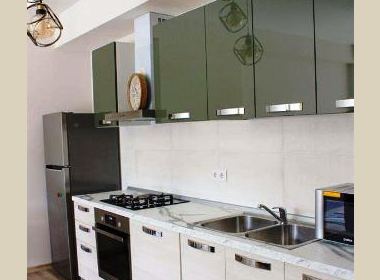 3-roomed 90 sq.m. apartment for rent in Saburtalo, on Kartozia str, in new building, on the 7th floor, new renovated, with central heating, furniture, large veranda with beautiful views