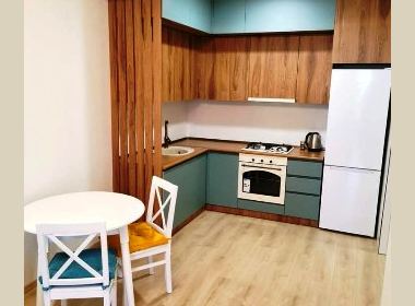 2-roomed 60 sq.m. apartment for rent in Saburtalo, on Mindeli str, in new building, on the 17th floor, new renovated, with open plan living room, central heating, air-conditioner, furniture, technique, balcony, 3 lifts, concierge service