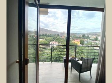 2-roomed 65 sq.m. apartment for rent in Krtsanisi, on Krtsanisi str, in new building, on the 9th floor, new renovated, with open plan living room, central heating, air-conditioner, furniture, technique, 2 balconies with beautiful views