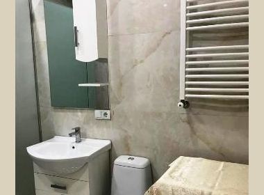 2-roomed 65 sq.m. apartment for rent in Bagebi, on Tskneti highway, II floor of 2-storied private house, renovated, with central heating, furniture, technique, small yard
