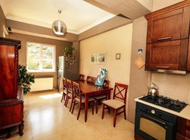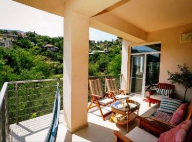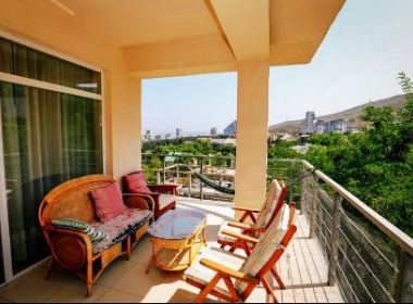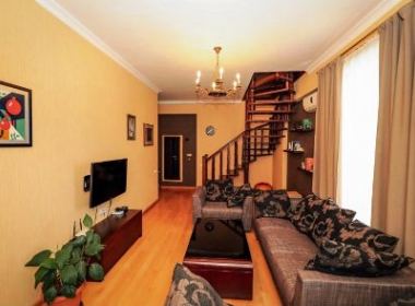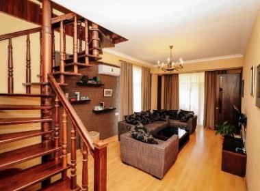 3-roomed 174 sq.m. duplex type apartment for rent in Bagebi, on Uchaneishvili str, in new building, on the 5th floor, new renovated, with central heating, air-conditioners, 2 bathrooms, dressing room, furniture, technique, balconies, large verandas with beautiful views