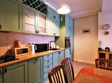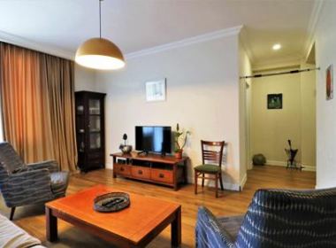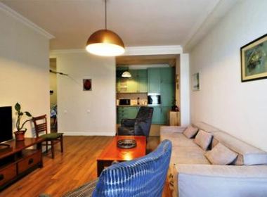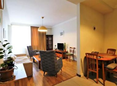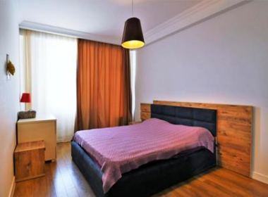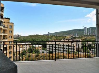 4-roomed 140 sq,n, apartment for rent in Saburtalo, on Kutateladze str, territory of Shankhai, in new building, on the 7th floor, new renovated, with central heating, air-conditioner, open plan living room, 2 bathrooms, furniture, technique (dishwasher), 3 balconies, veranda, parking
