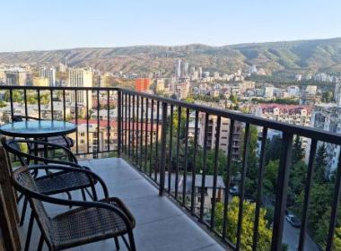 3-roomed 80 sq.m. apartment for rent in Saburtalo, on Gurieli str, in new building, on the 9th floor, new renovated, with central heating, air-conditioner, open plan living room, furniture, technique, internet, balcony with beautiful views, place for parking